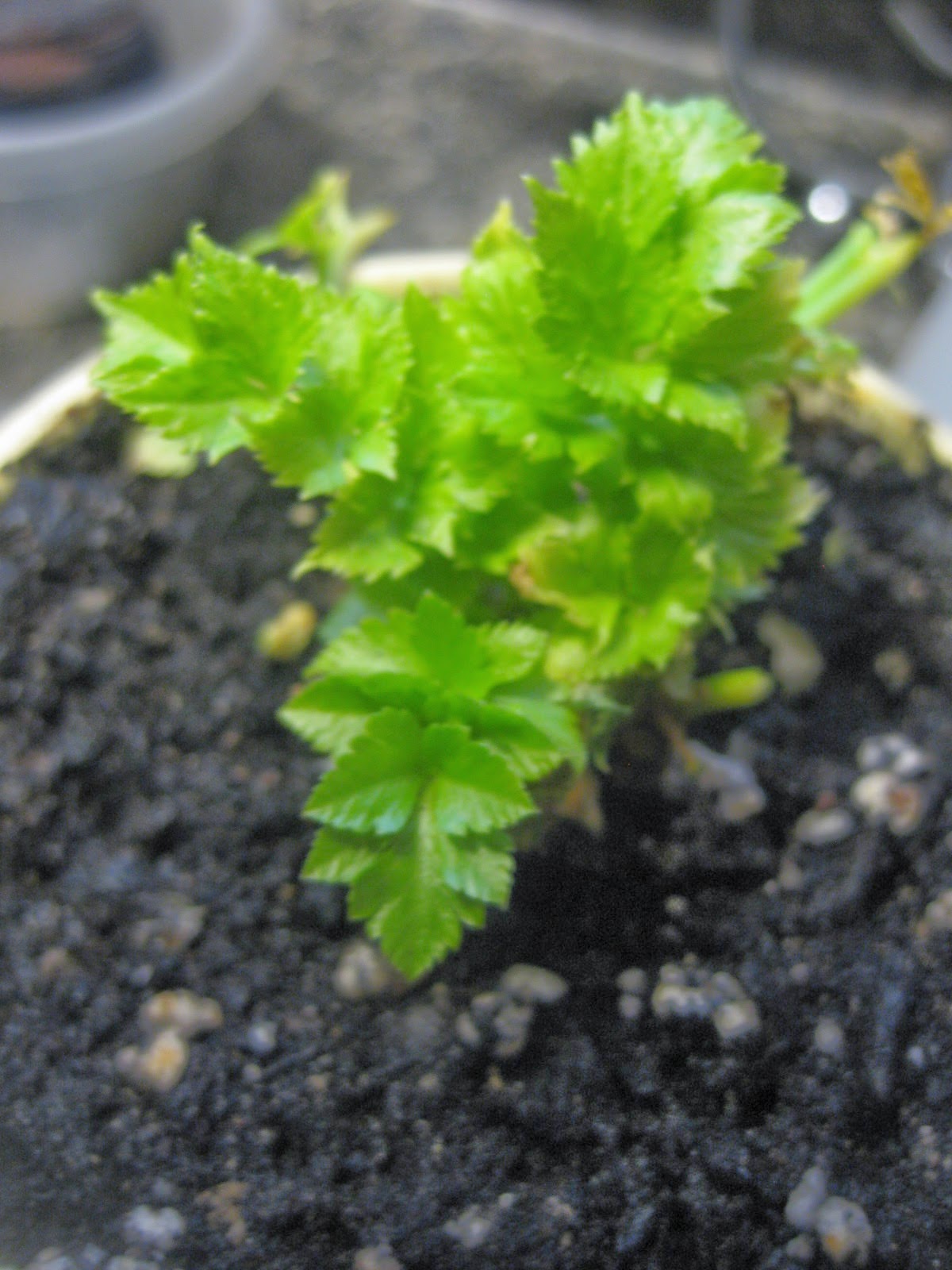 | I've been picking off the leaves of my very aromatic and versatile friend, celery! Now that it's potted it is growing quickly! |